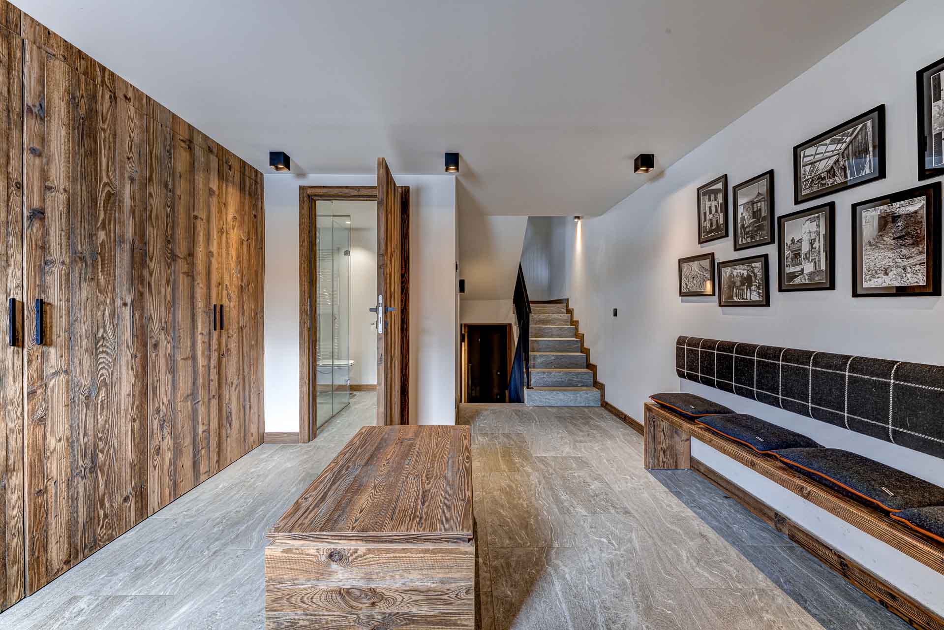 On the ground floor there is an entrance hall with ski storage, heated boot warmers, and ample reception space. A very useful toilet and shower room, A laundry room, technical room, and a room originally designed to accommodate a sauna, complete this lower level.