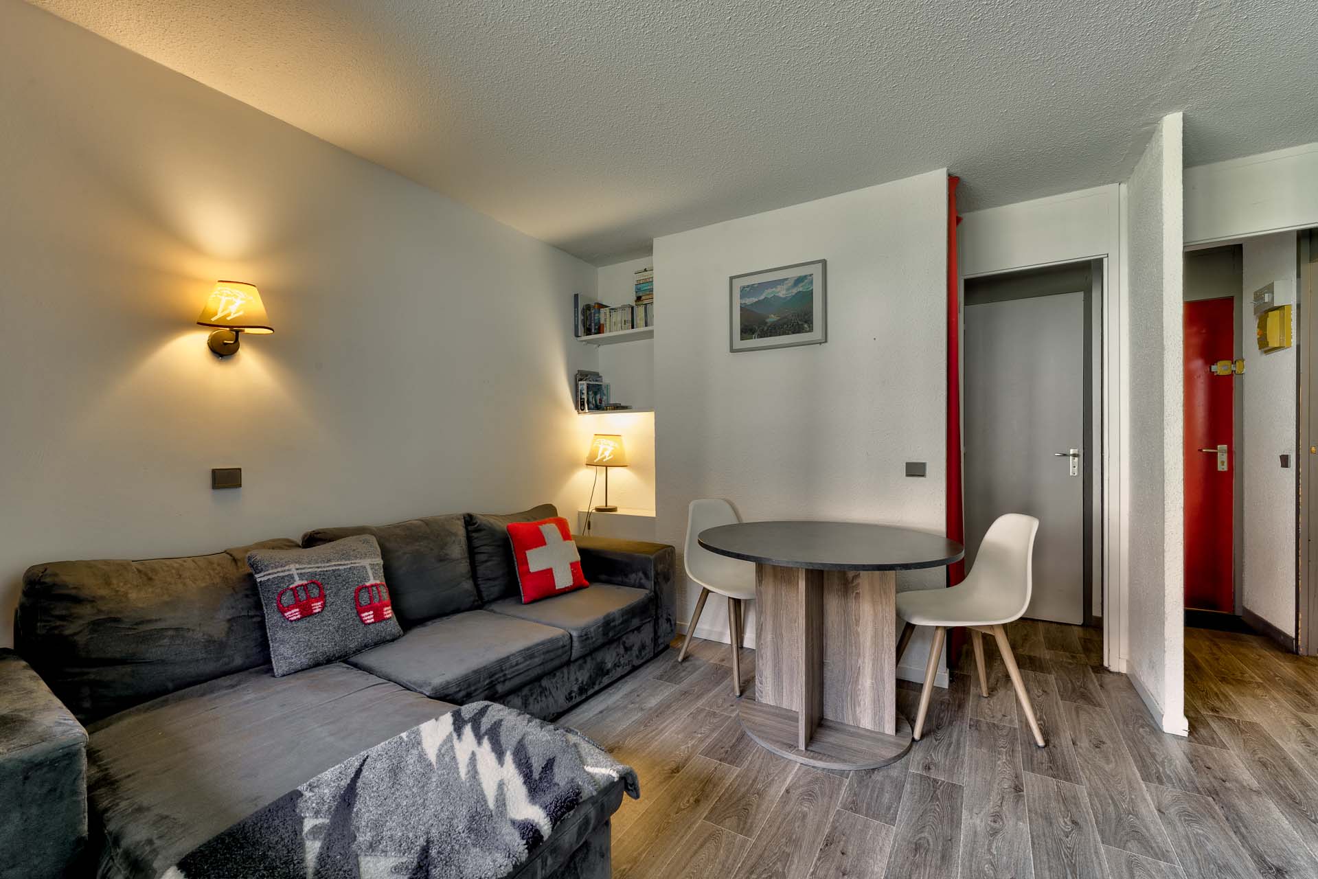 Leading out onto a private balcony, you overlook a communal garden and the access directly to the piste. A short walk down the corridor takes you to an external door, the communal gardens and the piste.