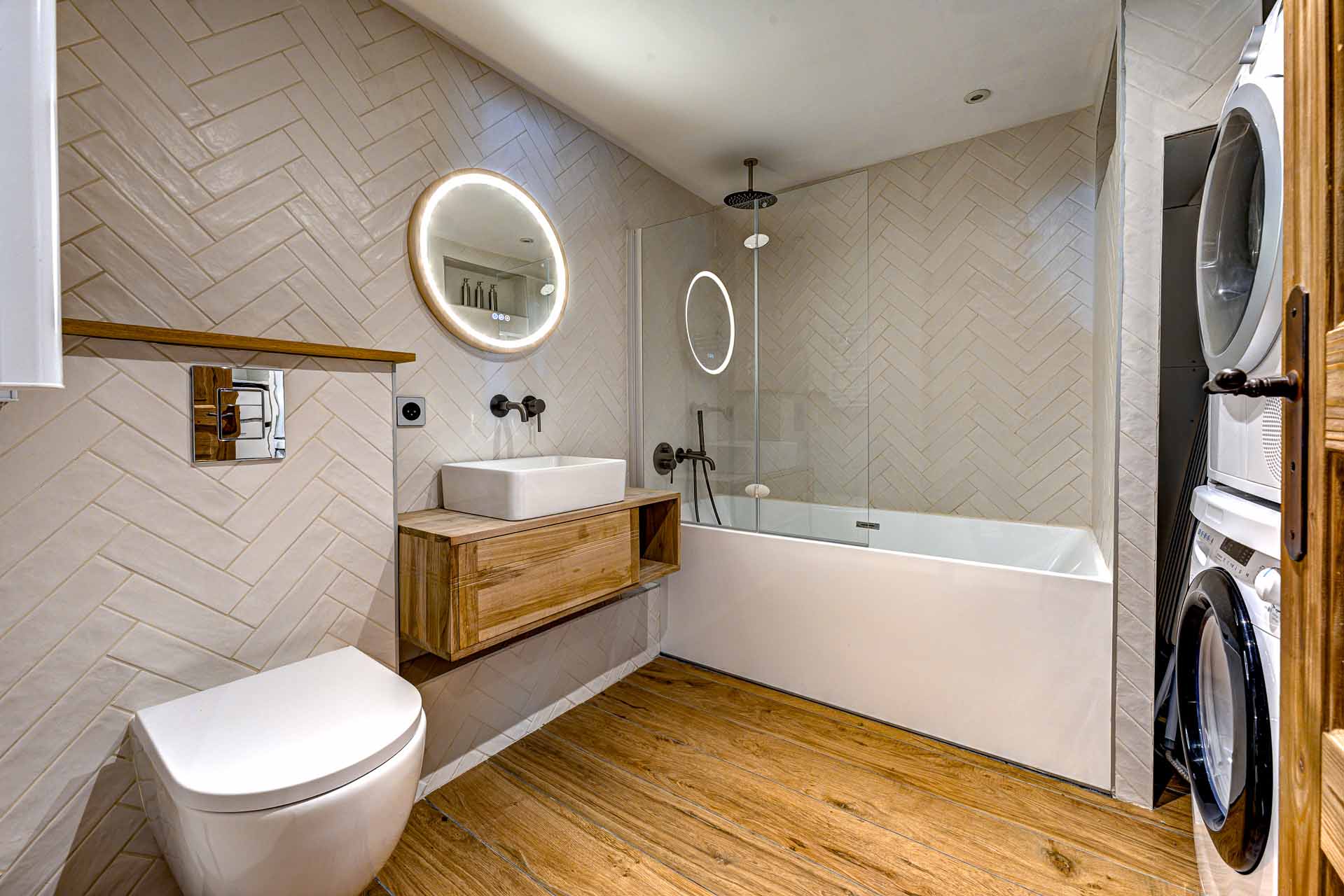 A family bathroom and small utility area complete the family friendly accommodation.  A real bonus: the apartment comes with its own private ski locker.