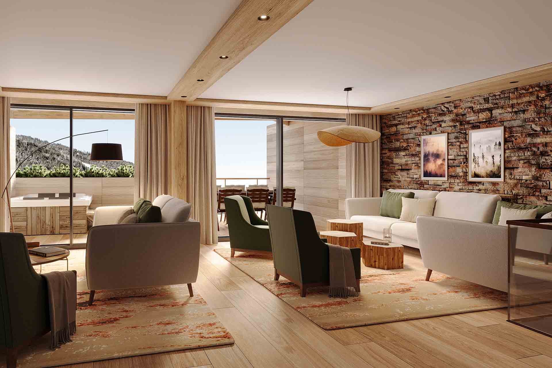 Steamboat Lodge has 31 new apartments for sale by a hugely respected Alpine developer with an enviable track record of delivering superb luxury Residences. The Residence will come with everything you need for effortless enjoyment of your home in the mountains, with reception and concierge service, restaurant and bar, swimming pool and Spa, ski room and ski shop